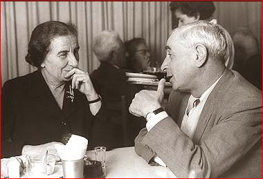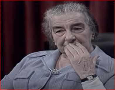 גולדה עם לבון: מעניין מה הוא אומר לה כשהוא מבליט עם האגודל את האגו שלו. היא, גולדה, מסתירה את פיה שנראה חצי מחייך בלעג והיא עושה את זה תוך הבלטת האצבע האמצעית שלה שמראה מה היא חושבת עליו ורוצה לומר לו